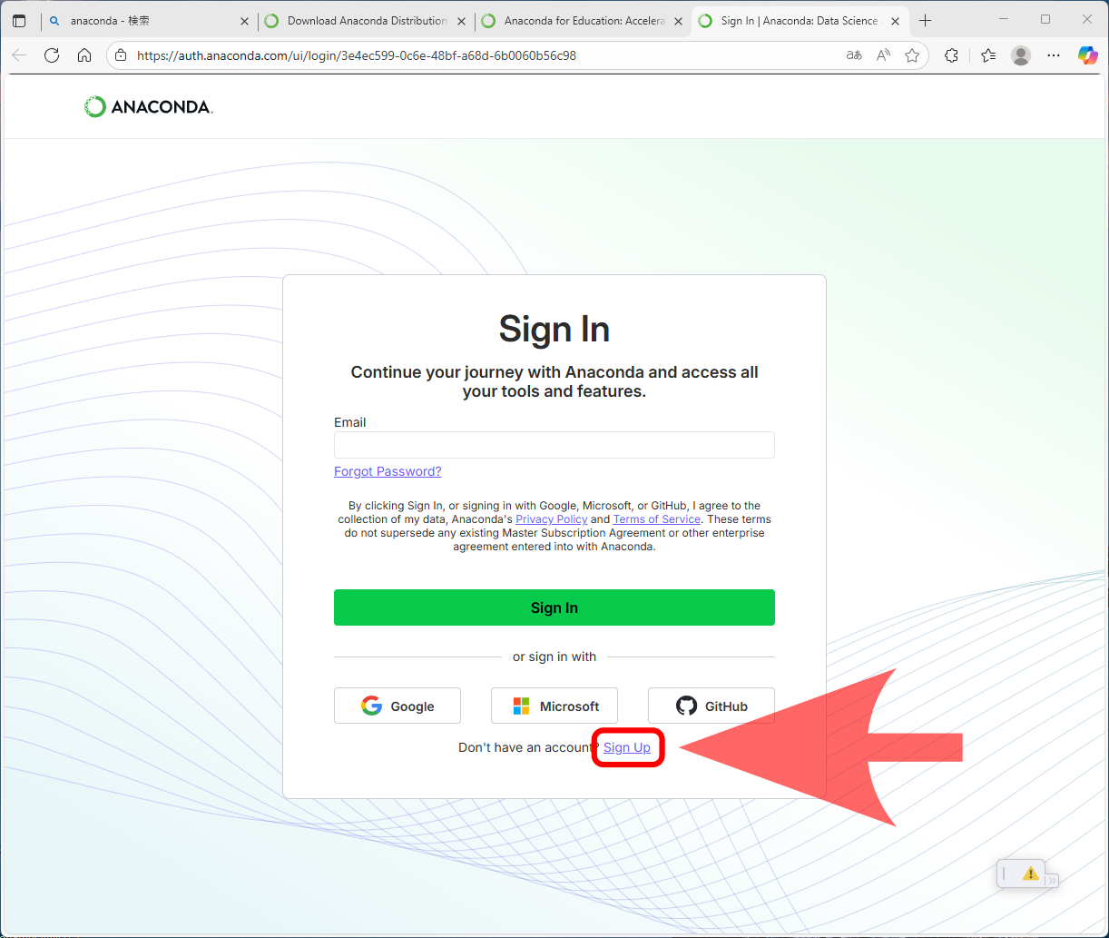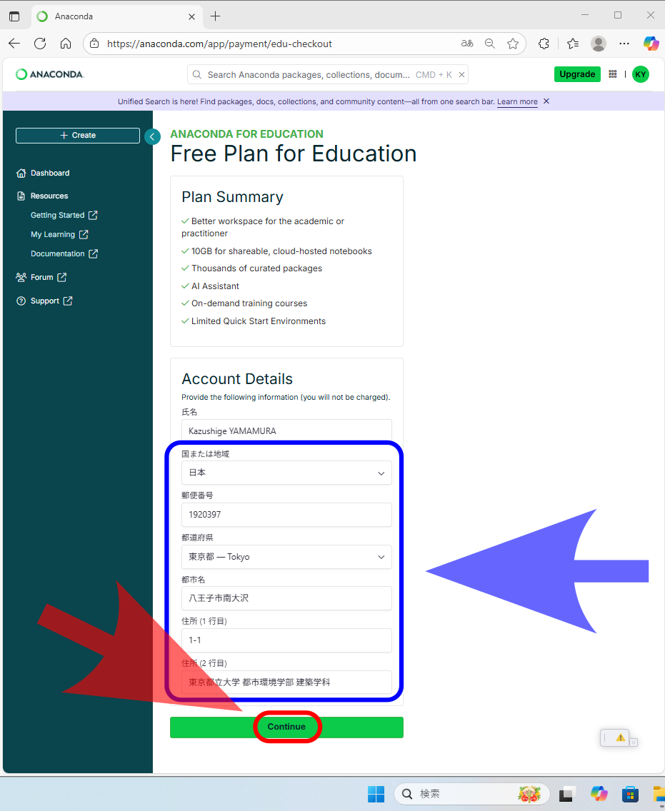 【重要】anacondaを大学の授業や研究で使うためには、アカウントを作成すること が望ましい。