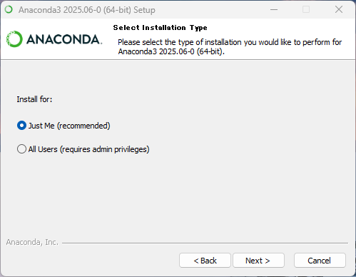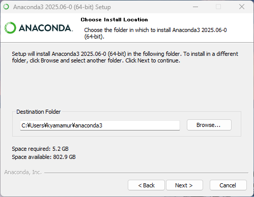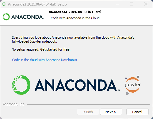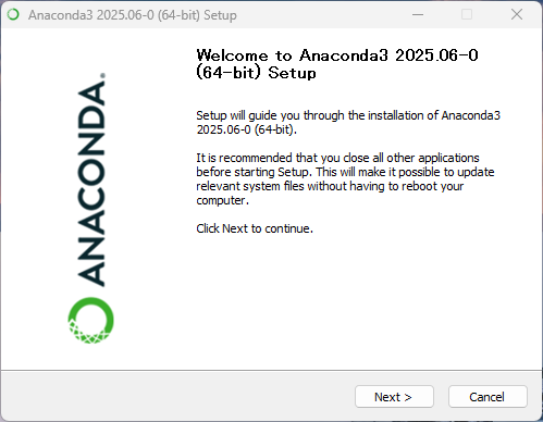 以下のページではMicrosoft WindowsをOSとしているPCにAnacondaをインストールする手順を示す。macOSでもほぼ同様の手順でインストールできると思われる。