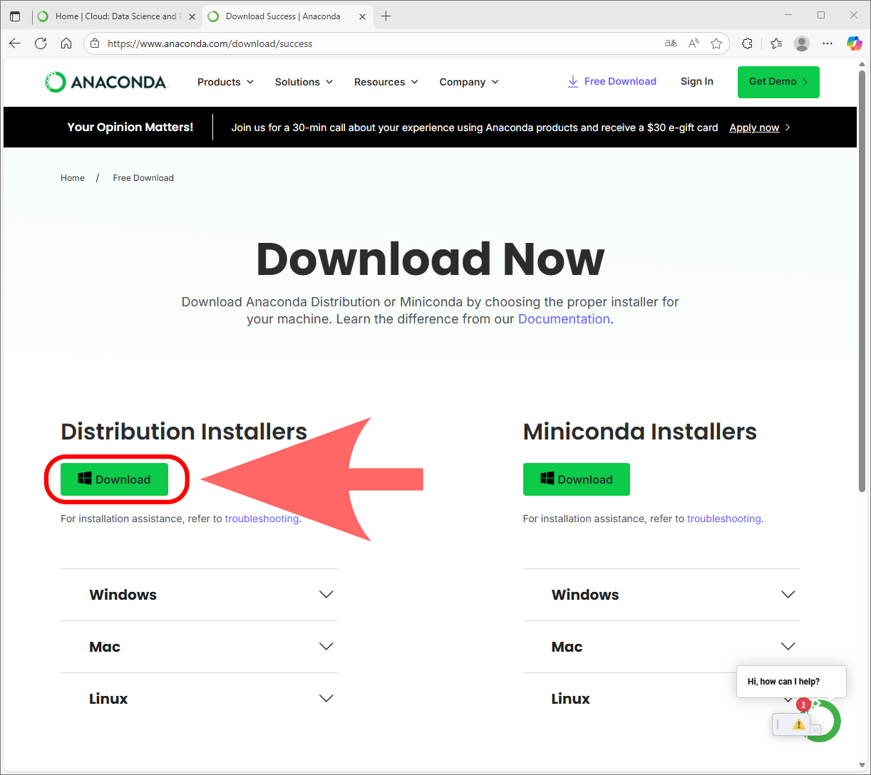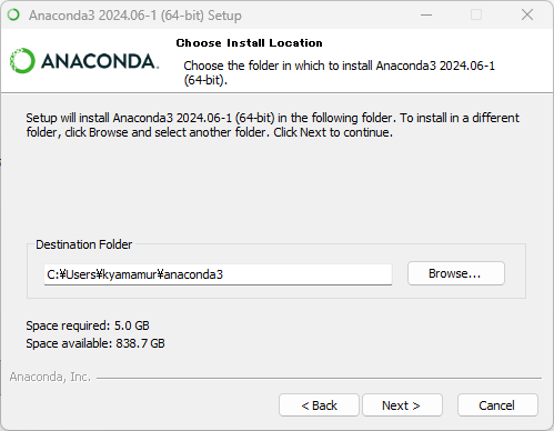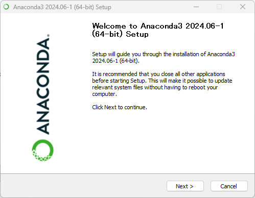 以下のページではMicrosoft WindowsをOSとしているPCにAnacondaをインストールする手順を示す。macOSでもほぼ同様の手順でインストールできると思われる。