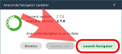 - ここまでで最新の「ANACONDA NAVIGATOR」が使えるようになる。